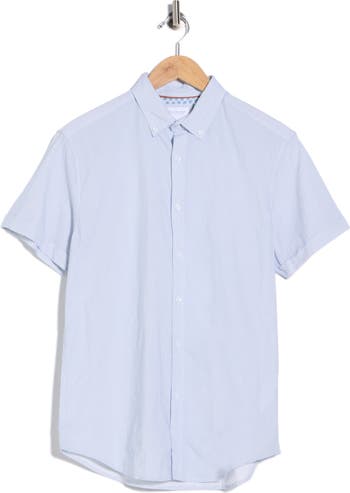 Cut from a lightweight cotton-blend, this short-sleeve button-down shirt covered in a geometric print is an easygoing staple for your collection.
