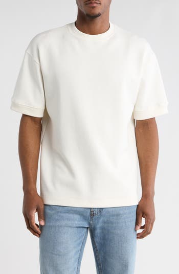 A relaxed fit and drop shoulders enhance the easygoing comfort of this heavyweight, cotton-forward knit T-shirt.
