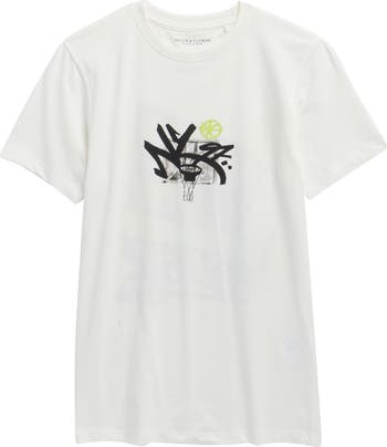Upgrade their casual wardrobe with this cotton T-shirt that featuring basketball-inspired graffiti graphics at the chest and back.