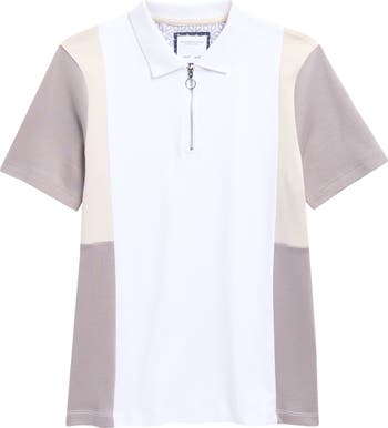 Give your kid polished style with this cotton-blend polo boasting a sporty quarter-zip closure, contrast tipped stripes and a cool colorblocking.
