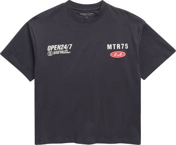 Racer-inspired graphics bring confidence and sporty vibes to a graphic T-shirt made from pure cotton for a comfy fit in or out of the classroom.