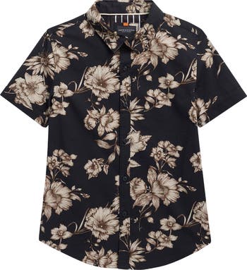 A floral pattern adds cool charm to this short-sleeve button-up shirt cut from breezy cotton-rich poplin.