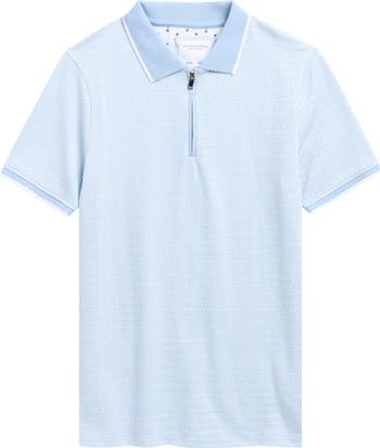 Give your kid polished style with this cotton-blend polo boasting a sporty quarter-zip closure, contrast tipped stripes and a cool geometric pattern.