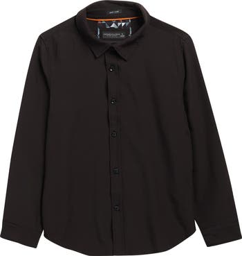 A solid button-up shirt cut from an easy-care fabric offers them comfort and versatile style.
