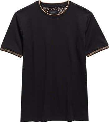 Perfect for picture day or playdates, this elevated T-shirt is crafted from cotton knit and finished with a geometric-patterned tipped crewneck and cuffs.