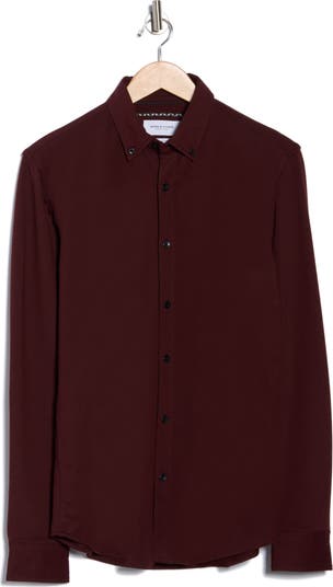 Look polished and still feel comfortable in this long-sleeve button-down shirt cut from a soft cotton-blend piqué knit with generous stretch.