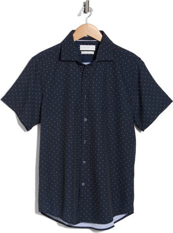 Cut from a moisture-wicking, wrinkle-resistant tech fabric, this short-sleeve button-up shirt in a micro dot print is an easy staple for your collection.