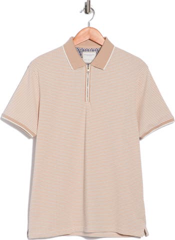 Contrast tipping highlights this textured horizontal-stripe knit polo finished with a sporty zipper closure that keeps you comfortable in the office or out on the town.