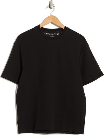 Curvy shoulder seams and a gently textured finish elevate this black crewneck T-shirt cut for a comfortable relaxed fit.