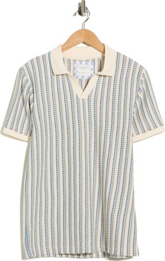 Textured Stripe Johnny Collar Polo