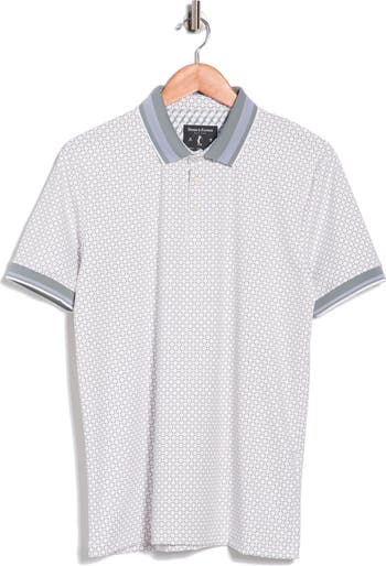 Contrast tipping highlights this knit polo finished with a textured geometric pattern that keeps you comfortable in the office or out on the town.