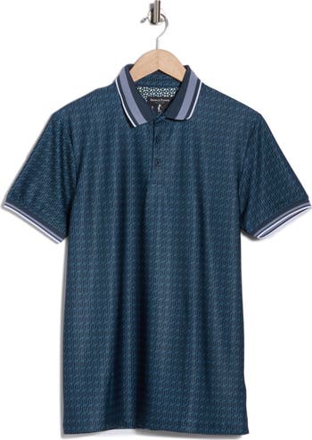 Contrast tipping highlights this cool polo covered in geometric patterns perfect for a casual day at the office or out on the town.