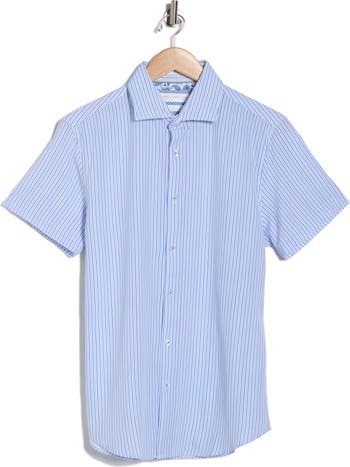 Cut from a lightweight blend, this short-sleeve button-up shirt covered in classic stripes is an easygoing staple for your collection.