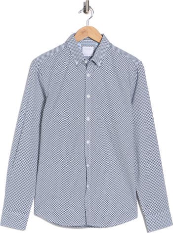 A subtle print elevates the casual work-to-weekend vibe of a slim-fit button-front shirt woven from a lightweight stretch-cotton blend that retains its shape well over time.