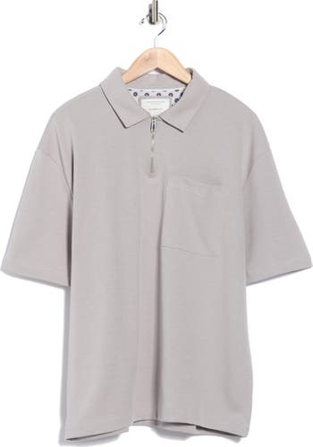 A zippered closure and boxier silhouette put a fresh spin on this classic polo cut from a heavyweight cotton blend.