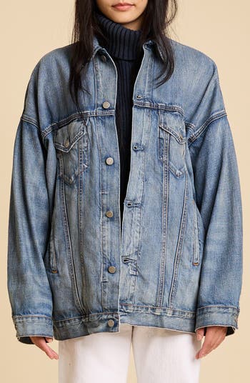 A faded wash amplifies the timelessly cool style of this nonstretch denim jacket cut in a slouchy, cropped silhouette that's easy to layer.