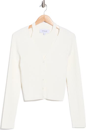 Channel the layered look with one-and-done ease in this ribbed-knit sweater that brings on-trend appeal to chilly-day ensembles.