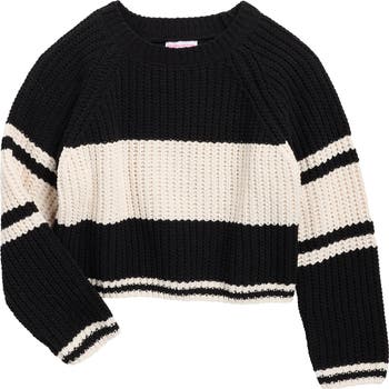 Get them ready for sweater weather with this sweet style knit in a colorblocked stripe pattern.