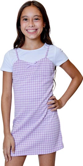 Your fashionista will look so adorable in this twofer dress that features a bow-adorned gingham dress layered over a T-shirt.