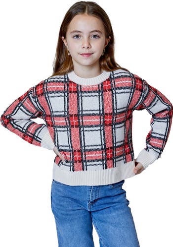 Cozy and effortlessly cute, this kid-approved sweater is crafted in a plaid jacquard knit.