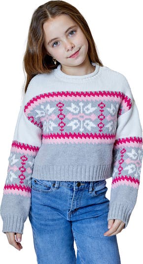 Holiday-ready and oh-so-cute, this cozy sweater is knit with a festive snowflake pattern.