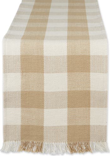 Textured in an always-classic checkered design, this cotton table runner trimmed in wispy fringe will be an everyday favorite, especially because it's machine washable.