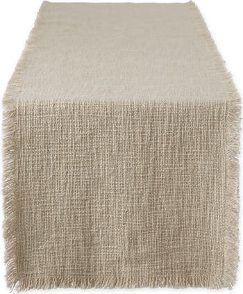 A fringe-trimmed runner rich in tone and texture makes a great centerpiece for your table.