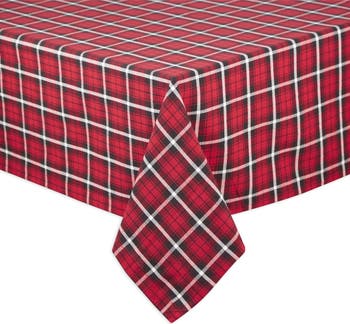 A festive plaid brings a fun, seasonal vibe to a decorative table runner made from heavyweight cotton that protects your table and is also machine washable for quick cleanups post holiday feast.