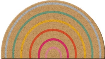 Welcome your guests and keep your home clean with this durable coir doormat with a rainbow design.