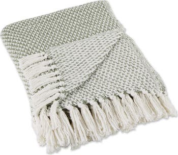 Hand-knotted tassels trim this lightweight yet warm throw blanket intricately woven from pure cotton for rustic appeal.