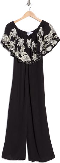 A popover design that's playfully embroidered adorns this wide-leg jumpsuit that's perfect for day-to-night looks.