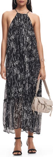 This floaty maxi dress features a fun floral pattern, dainty tie straps and a flounced hem that sways as you step.