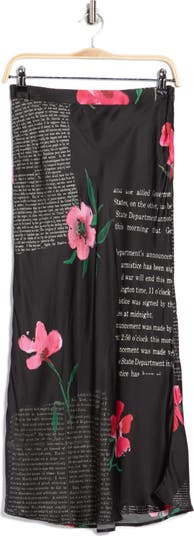 An artsy floral print covers this bias-cut maxi skirt made from a drapey woven fabric.