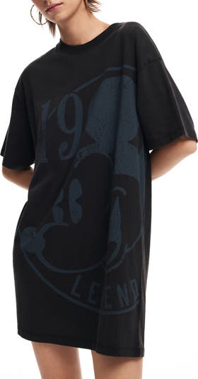 A tonal Mickey Mouse Legend stamp dominates an all-cotton T-shirt dress cut in an abbreviated length.