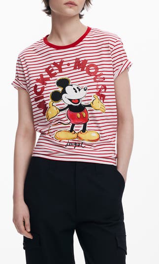 Magical Mickey takes center stage on this cool striped T-shirt detailed with retro ringer trim and rooted in the comfort of soft, breathable cotton.