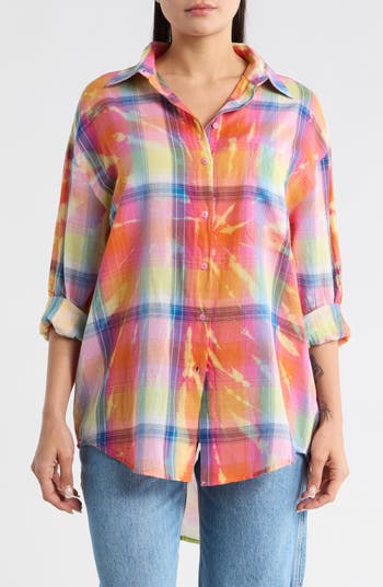 An oversized fit and pure-cotton fabrication lend cozy comfort to a signature button-up shirt patterned in pretty plaid checks.