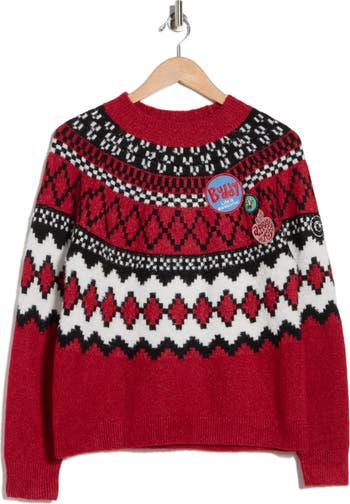 Patchwork detailing adds a sweet finishing touch to a cuddly crewneck sweater that's sure to be an instant favorite for layering on chilly days.