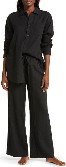 Elevate your evening routine in these all-linen pajamas with a long-sleeve top and matching lounge pants in a relaxed fit for sink-in comfort.