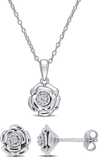 Accessorize in timeless style with this sparkling set featuring stud earrings and a sweet pendant necklace.