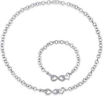 Accessorize in timeless style with this sparkling set featuring an infinity bracelet and a matching necklace.