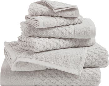 [This review was collected as part of a promotion.] These towels are perfect! They are the perfect texture: absorbent and not too soft! The diamond weave texture also gives them a more luxe look and feel. They are a good size set: bath towel, hand towel and wash cloth are all pretty standard sized. They’ve held up well to washing. I highly recommend these!