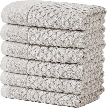 Upgrade your bathroom essentials with this set of luxuriously soft hand towels that are crafted from absorbent cotton and feature a darling diamond texture.