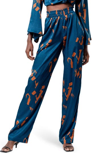 A ruffle-trim elastic waist sweetens the look of silky jacquard pants boasting a rich sheen. Each piece is designed for longevity. Every garment is made-to-order to reduce production waste.