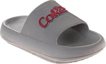 A Coca-Cola logo pops at the vamp of this slide sandal designed with a pillow-soft insole and ventilated platform sole for comfort.