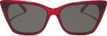 Sleek cat-eye frames and logo-marked temples define everyday sunglasses fitted with scratch-resistant CR-39 lenses and shaped from lightweight acetate.