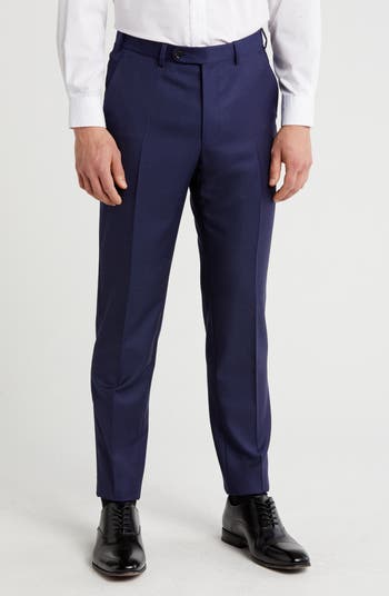 Subtly textured virgin wool brings polish and distinction to flat-front trousers crafted with crisp leg creases and styled to look smart at any occasion.