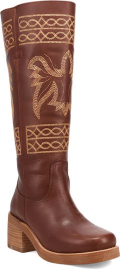Bring standout retro style to your everyday look with this '70s-inspired leather boot strikingly detailed with contrast multirow topstiching in an elegant bird motif.