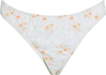 A stretchy eyelet fabric sweetens these cheeky bikini bottoms ready for your next beach day.