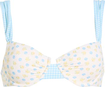 Underwire and adjustable thick straps lend extra support to this flirty bikini top covered in charming mixed prints.
