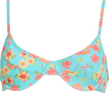 Underwire and adjustable straps lend extra support to this flirty bikini top covered in a tropical floral print.
